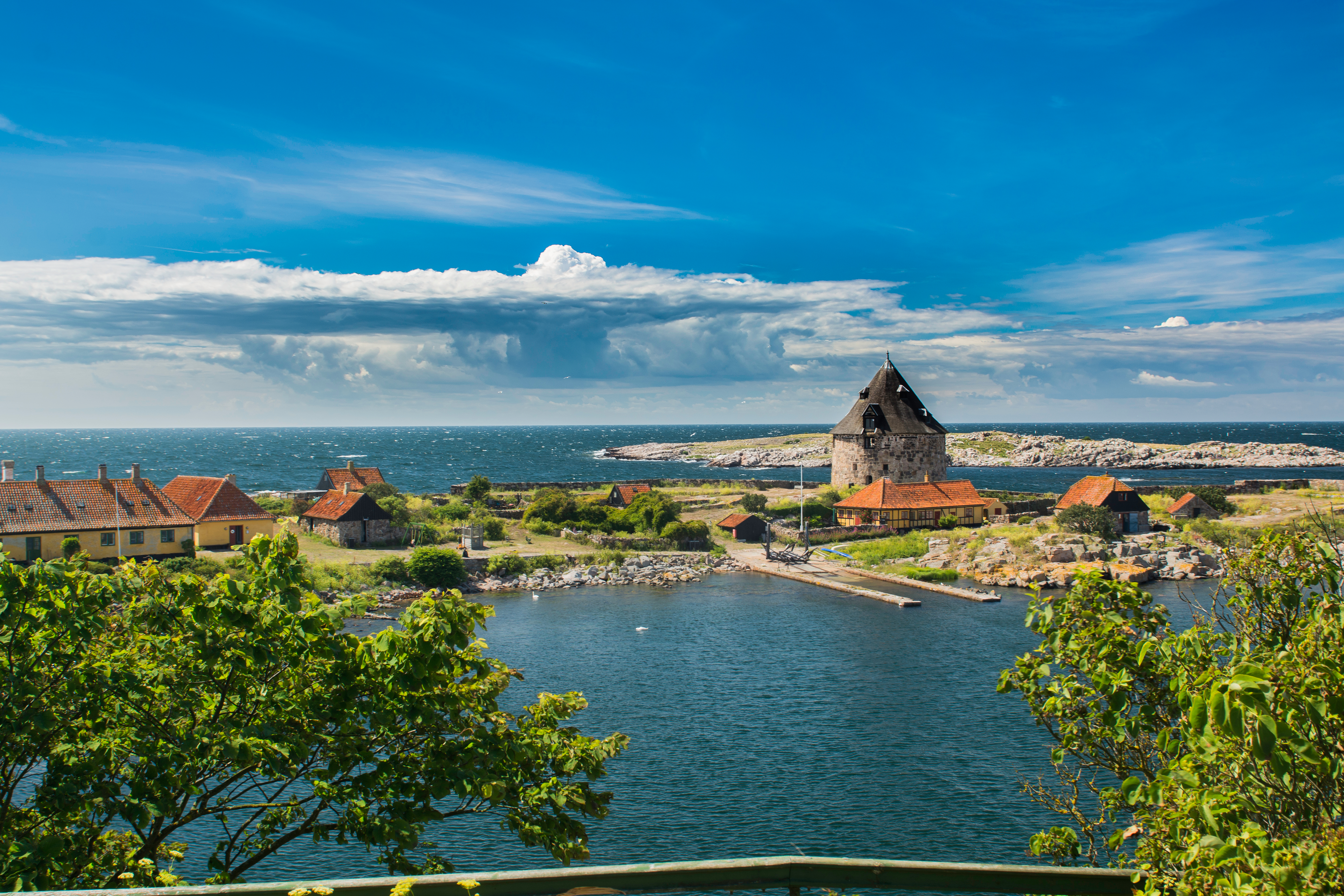 Øst for det danske fastlandet ligger den vakre klippøya Bornholm i Østersjøen. Øya har flere soldager enn noe annet sted i Danmark og preges av spektakulære klipper i nord, vakre sandstrender, skogkledde åser og bugnende blomsterenger - kort sagt et paradis for kropp og sjel.Her kan man nyte deilige smaker og kjenne duften av blomster og hav, høre havet bruse, og rusle en stille tur i det vakre, flate landskapet, på trygg avstand fra hverdag og stress. Tettstedene på øya er idylliske og små, og spesielt sjarmerende er byen Rønne med sine gamle bindingsverkshus og brosteinsbelagte gater.